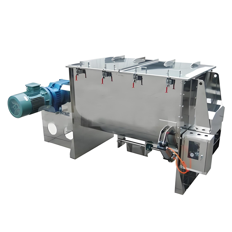 A Horizontal Ribbon Mixer is a high-efficiency batch mixing equipment characterized by its horizontally oriented mixing container ("horizontal") and internal rotating agitator blades. Its core components include a U-shaped or O-shaped horizontal trough and one or more rotating shafts equipped with specifically designed blades (most typically spiral ribbon blades).