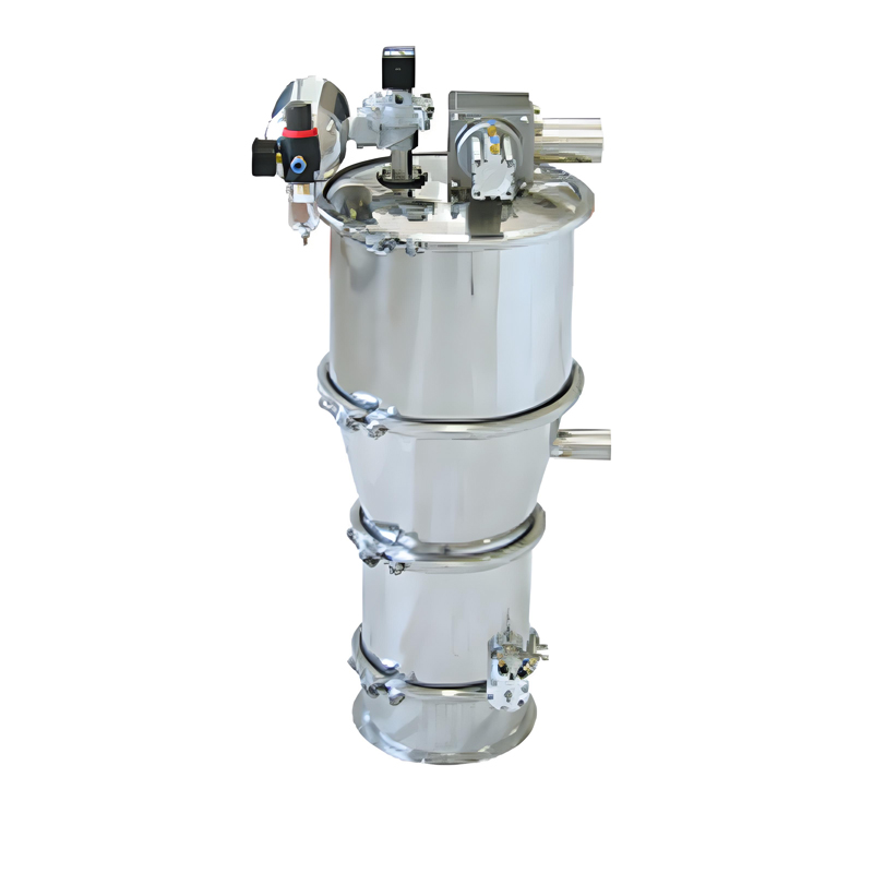 A vacuum feeder is a vacuum conveying device designed for powdery materials, granular materials, and mixed powdery-granular materials. It can automatically convey various materials into the hoppers of equipment such as silos, packaging machines, injection molding machines, and crushers. It can also directly convey mixed materials into mixers (e.g., V-type mixers, two-dimensional mixers, three-dimensional mixers, etc.). This equipment reduces workers' labor intensity and solves problems such as dust overflow during feeding. It is an essential device for pharmaceutical factories and food factories to obtain GMP certification, promote clean production, and achieve standardized workshop operations.